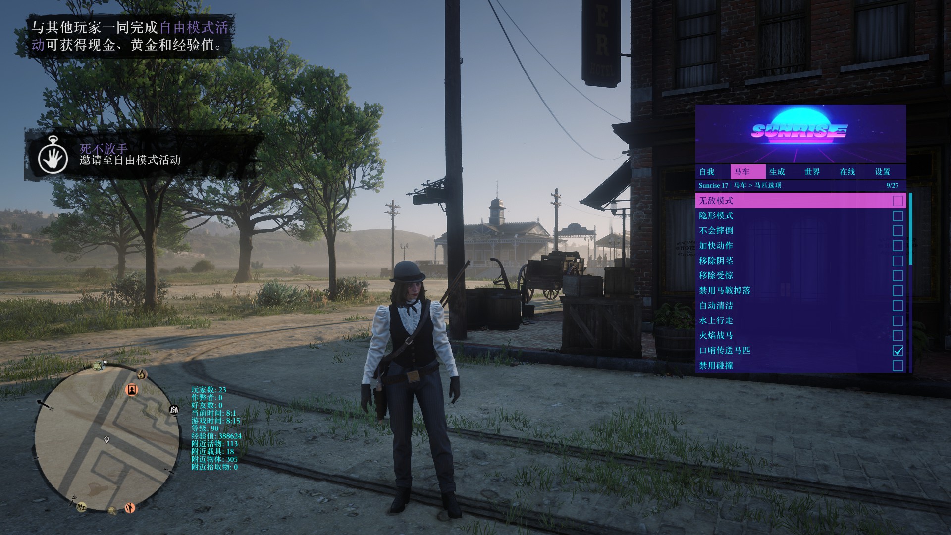 娱乐体验性为RDR2辅助历史上最强大的辅助,可以骑行老鹰并发射陨石导弹,支持空中飞行/墙上行走/水上行走/骑行动物/龙息喷火/战斗丧尸模式,以及自定义快捷键。日出是目前唯一一款具备娱乐 / 高端 / 安全 / 舒适 / 强大为一体的辅助!